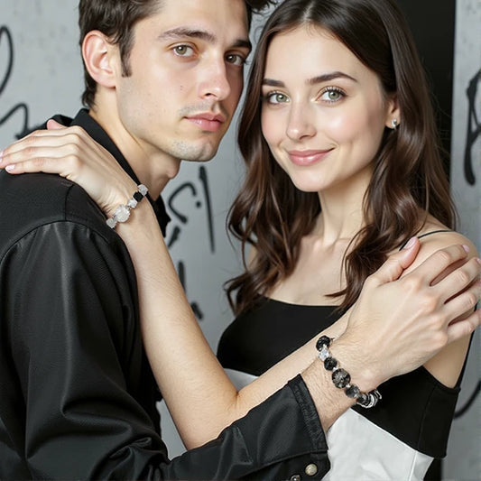 Couple Guardian Bracelet – Obsidian & Cat’s Eye with Lion Beads