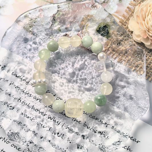 Dewdrop Glow – Serpentine & Clear Quartz Bracelet for Clarity, Renewal & Harmony